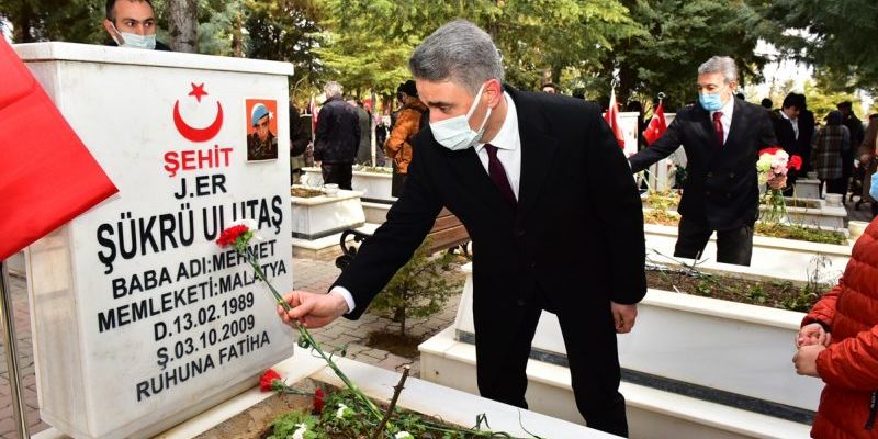 Anıttaki törenin akabinde Vali Aydın Baruş ve beraberindekiler şehitliği ziyaret ederek şehitlerimizin mezarlarına karanfil bıraktılar. Vali Baruş ve beraberindekiler, Şehitlerini yad etmek amacıyla orada bulunan şehit ve gazi aileleri ile sohbet ettiler.