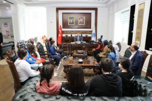 Spora ve sporcuya büyük önem veren Battalgazi Belediye Başkanı Osman Güder, Malatya Gençlik ve Spor İl Müdürlüğü bünyesinde faaliyet gösteren okçuluk branşındaki sporcular, antrenörler Filiz Kılıç ve Engin Ayhan, Malatya Okçuluk İl Temsilcisi Rabia Ayhan ve Gençlik Spor Müdürlüğü Spor Faaliyetleri Şube Müdürü Murat İrteni’yi makamında konuk etti. Sporcular ve antrenörler ile yakından ilgilenen Başkan Güder, 2022 yılı Malatya Okul Sporları Okçuluk Turnuvasında, Büyük Kız ve Erkek Makaralı Yay il birinciliği, 15-18 Yaş Kategorisi Yıldız Kız ve Erkek il birinciliği, 12-15 Yaş Yıldız Erkek İl birinciliği, 8-10 Yaş Minik Erkek il Birinciliği ve Küçük Erkek 10-12 Yaş il birinciliği olmak üzere toplam 6 Altın, 3 Gümüş ve 4 Bronz madalya alarak Türkiye Şampiyonasına katılma hakkı elde eden 12 sporcu ve antrenörlerini tebrik etti. Ata sporlarımızdan bir tanesi olan okçuluk sporunu Battalgazi’de daha da geliştirmek için bir dizi çalışmalar yaptıklarını da belirten Başkan Güder, kökeni insanoğlunun avcılık dönemine dayanan okçuluğun, bireyin ruh sağlığına da etkilerini olduğunu aktardı.
