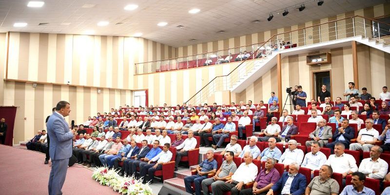 Malatya genelindeki mahalle muhtarlarının katılımı ile MASKİ Genel Müdürlüğü toplantı salonunda gerçekleştirilen istişare toplantısında konuşan Başkan Gürkan, “Kayısı Festivalimizin bu yıl 25’incisini kutlayacağız. Kayısı festivalinin tarihçesine baktığımız zaman 1973 yılında kayısı şenlikleri başlamış daha sonra 1980 ihtilali ile ara verilmiş daha sonra tekrar başlamış ve akabinde yine ara verilmiş. Pandemi döneminden dolayı yapamadık. Geçtiğimiz yıl ve bu yıl kayısı festivalini hep birlikte yapacağız. Amacımız Malatya’yı her yönüyle tanıtmak ve tanıtabilmek. Bu tanıtımı yaparken Malatya’daki birlik, beraberlik ve dayanışmanın en güzel fotoğrafını hem Malatya’ya hem de Türkiye’ye sunabilmektir. Muhtarlarımız demokratik yönden seçilmiş kişilerdir. Sizler mahallelerinizde isimlerinizle seçiliyorsunuz. Seçilmişlerin en kıymetlisi en değerlisi muhtarlardır. Muhtarları tarif ederken demokrasi bir nehirse o nehri besleyen kaynaklara muhtarlık müessesi diyoruz. Yerel Yöneticiler olarak sizlerle gerek kamusal alanlardaki iş ve işlevlerin yürütülmesinde gerek yerel yönetim anlamındaki iş ve işlemlerin yürütülmesinde birlikte hareket ediyoruz. İnsanın yaşadığı toplum ve topraklara karşı görevleri vardır. Bir toplumda yaşıyorsak bu topluma karşı bizim vebali sorumluluğumuz var bunu da yerine getirmemiz lazım.