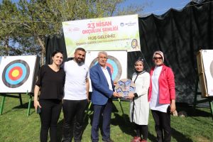 Battalgazi Belediyesi ile Malatya Gençlik ve Spor İl Müdürlüğü tarafından 23 Nisan Ulusal Egemenlik ve Çocuk Bayramı münasebetiyle “23 Nisan Okçuluk Şenliği” düzenledi. Malatya Şeker Fabrikası içerisinde düzenlenen şenliğe katılan öğrenciler, birbirinden farklı etkinlikler ile şenliğin tadını doyasıya çıkardı. Şenlik alanında keyifli aktiviteler ile gönüllerince bir gün geçiren çocuklar, uzman eğitmenler nezaretinde ok atışı yaparak, unutulmaz bir 23 Nisan Bayramı yaşadı. Yoğun ilgi gören şenliğe AK Parti Battalgazi İlçe Başkanı Basri Kahveci ile birlikte katılan Battalgazi Belediye Başkanı Osman Güder, çocukların 23 Nisan Ulusal Egemenlik ve Çocuk Bayramlarını kutlayarak, gururlu ve mutlu olduklarını söyledi. Etkinliğe katılan çocuklar ve aileleriyle tek tek yakından ilgilenen Başkan Güder, çocuklarla birlikte ok atışı da yaparak, şenlik sonunda çocukları hediye yağmuruna tuttu.