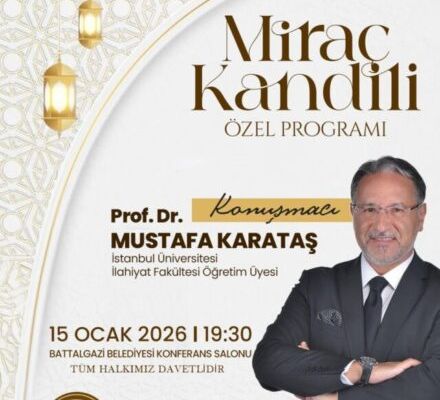 Battalgazi Belediyesi tarafından Miraç Kandili dolayısıyla düzenlenecek özel programda, İstanbul Üniversitesi İlahiyat Fakültesi öğretim üyesi Prof. Dr. Mustafa Karataş vatandaşlarla buluşacak.