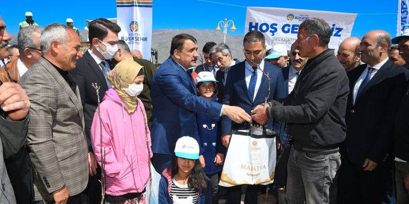 Malatya Büyükşehir Belediye Başkanı Selahattin Gürkan, Park ve Bahçeler Daire Başkanlığı tarafından temin edilen aşılı ceviz, badem ve elma fidanlarının toprakla buluşturulmak üzere çiftçilere dağıtım törenine katıldı.