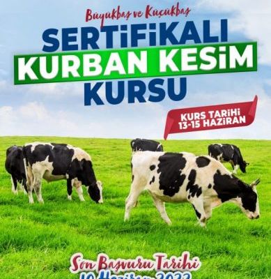 Kendi kurbanını kesmek isteyen vatandaşlara yönelik olarak düzenlenecek olan “Büyükbaş ve Küçükbaş Kurban Kesim Kursu” 13-15 Haziran 2022 tarihleri arasında gerçekleştirilecek. Düzenlenecek olan kursa katılarak başarılı olanlara ise Milli Eğitim Bakanlığı onaylı Halk Eğitim Merkezi tarafından kurban kesim sertifikası verilecek.