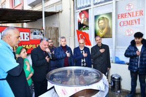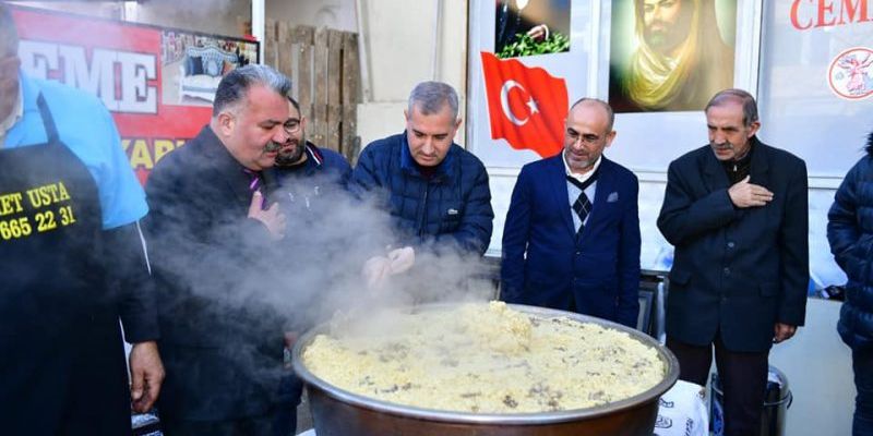Paşaköşkü Erenler Cemevi önünde düzenlenen Lokma Etkinliğinde vatandaşlarla bir araya gelen Yeşilyurt Belediye Başkanı Mehmet Çınar, okunan duanın ardından hazırlanan lokmaları gelen misafirlere ikram etti.