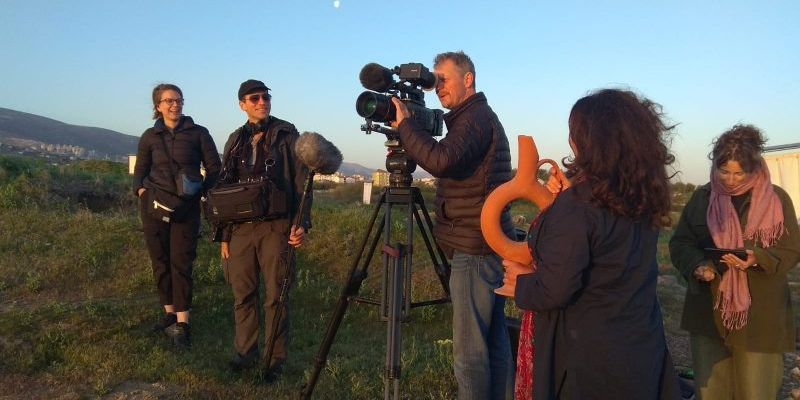 Arslantepe çekimlerine sabahın erken saatlerinde başlayan ekip, güneşin doğuşuyla birlikte