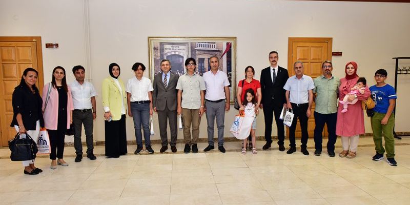 Vali Hulusi Şahin, Valilik Toplantı salonunda LGS sınavında tam puan alan öğrenciler Barkın Arda Hazar ve Semih Ağdemir ile İl Milli Eğitim Müdürü Hatice Özdemir, okul temsilcileri ve öğrencilerin aileleri ile bir araya geldi.