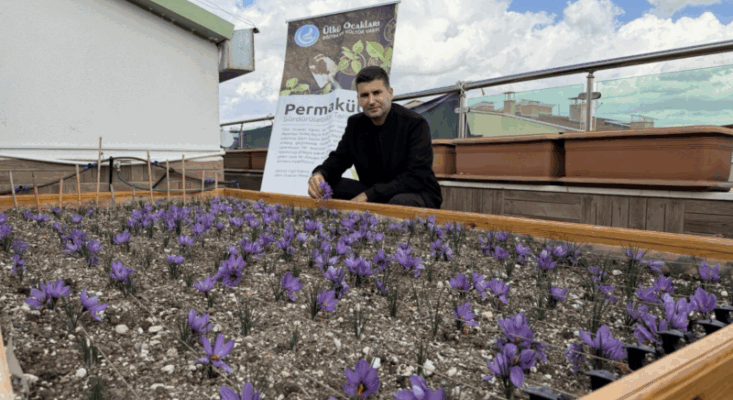 binanın terasında safran yetiştirdi. Ülkü Ocakları Genel Başkanı Ahmet Yiğit Yıldırım, çiçek