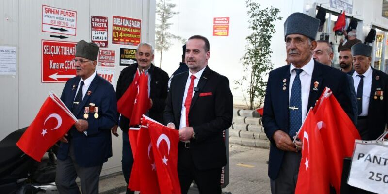 Büyükşehir Belediyesi yanında bulunan Geçici Ticaret Merkezi’ni de ziyaret eden Karademir ve gaziler, burada esnaflara bayrak hediye etti. Esnaflarla sohbet eden Karademir, Cumhuriyet’in anlamına vurgu yaparak birlik ve beraberlik mesajı verdi.