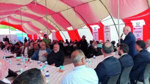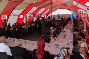 Programda İlk Konuşmayı Saadet Partisi Malatya İl Başkanı Mustafa Canbay, yaptı. Canbay konuşmasında; “6 Şubat Depreminde sarsılmış olan Malatya için bir nebze yardımcı olabilmek için Saadet Partisi ve Yeni Bir Dünya İşadamları Derneği AGD ve Can suyu derneğiyle ortaklaşa olarak kurduğumuz ve bu güne kadar aralıksız yemek verdiğimiz çadırımızın bu gün kapanışını yapacağız. Bildiğiniz gibi derin bir üzüntüyle ve hala üzerimizde etkileri devam eden bir deprem yaşadık. Bu deprem 11 ilde hasar oluşturdu. En çok 4 ilde büyük yıkımlar oldu. Hatay, Kahramanmaraş, Adıyaman ve Malatya bu deremde en fazla etkilenen iller arasında yer aldı. Depremin il günlerinde arama ve kurtarma çalışmalarında birtakım başarısızlıkların olduğu görüldü. Ama YENİAD işadamları derneğimiz depremin 3.gününde Kastamonu Bozkurttaki çadır, aşevini bütün teferruatı ile Malatya’ya getirdi. Bu güne kadar günde 3 öğün yemek hizmeti verdi. Bu desteklerinden dolayı bütün dernek mensuplarına teşekkür ediyorum. Resmi ve gönüllü arkadaşlarıma, emeği geçen herkese de şükranlarımı sunuyorum” ifadelerini kullandı.