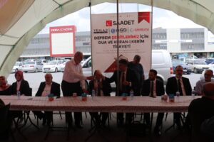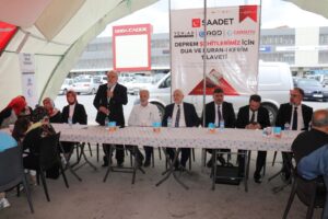 Saadet Partisi İl Başkanlığı tarafından Depremde yaşamını yitirenler için Kuran-ı Kerim okundu ve dua edildi. Program Yeni Bir Dünya Sanayici ve İşadamları Derneği, (YENİAD) Anadolu Gençlik Derneği(AGD) ve Cansuyu Yardımlaşma Derneği tarafından düzenlendi.