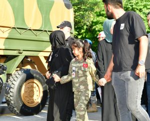 Şehidin eşi ve kızı…Şehidin Kızı Askeri Üniforma ile babasını uğurladı. Malatya Kahraman şehidi Piyade Uzman Çavuş 2 çocuk babası Halil Koç’u son yolculuğunda yalnız bırakmadı.
