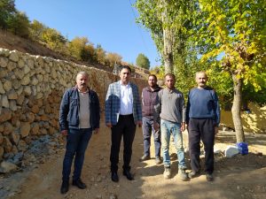 Yapımı devam eden taş duvar çalışmalarını yerinde inceledi.