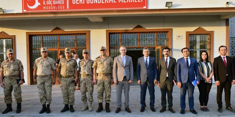 2400 kişi kapasiteli Geçici Geri Gönderme Merkezi sosyal tesisleri ve Göçmen Sağlığı Birimindeki incelemeleri sırasında burada verilen hizmetler hakkında ayrıntılı bilgiler aldı.