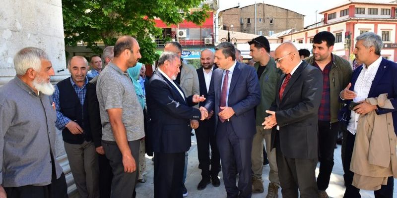 Cuma namazı sonrası Yeni Cami bahçesinde esnaf ve vatandaşlar ilimizde göreve başlayan Vali Şahin’e hayırlı olsun temennilerinde bulundular. Esnaf ve vatandaşlarla hasbihal eden Vali Şahin, onların Yeni Cami’nin restorasyonu hakkında fikirlerini dinledi.