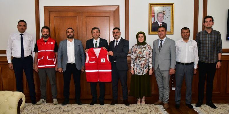 Türk Kızılay’ı Malatya Şube’si olarak Vali Hulusi Şahin’e Kızılay Gönüllü’sü yeleği hediye edildi.